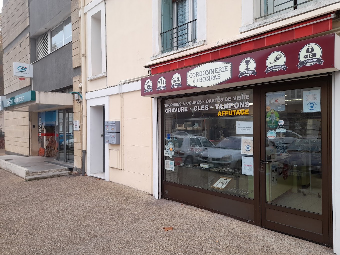 Réparation de chaussures et d’articles en cuir, clés classiques ou brevetées et double clé de voiture, télécommande portail, gravure, vente maroquinerie et couteaux.